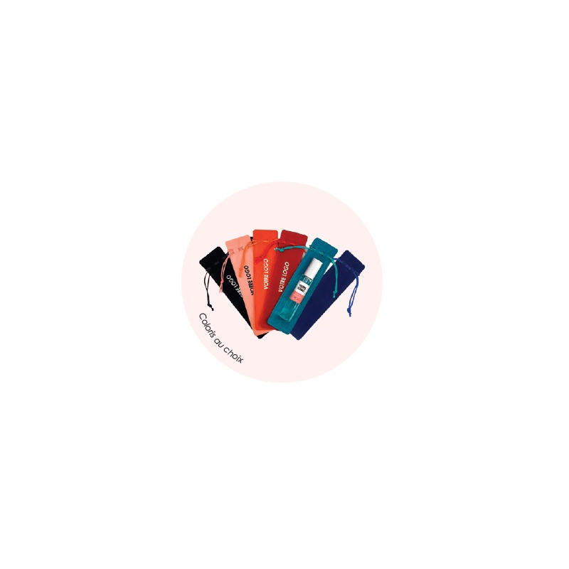 • Personnalisation : étiquette sur le flacon et/ou marquage sur l’étui en suédine.