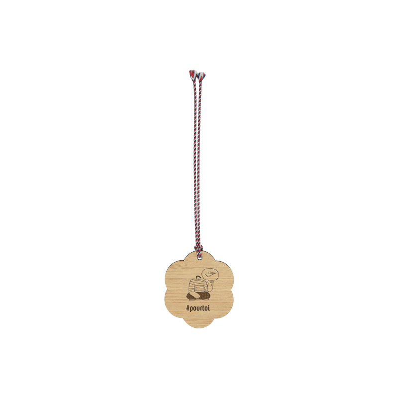 Cette décoration suspendue associe originalité et engagement dans votre communication.