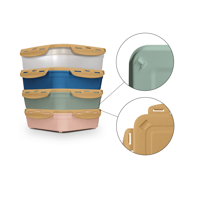 La boite repas publicitaire traverse les époques. Elle reprend aujourd'hui des couleurs avec l'engouement pour le zéro-déchet, Fabrication française de 100 cl utile, format carré, fourchette et cuillère fixées sous le couvercle (de la même couleur que les boîtes), 4 clips et joint silicone.