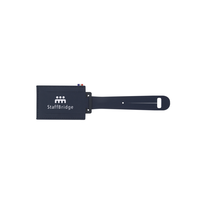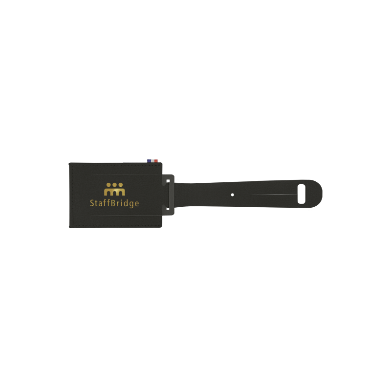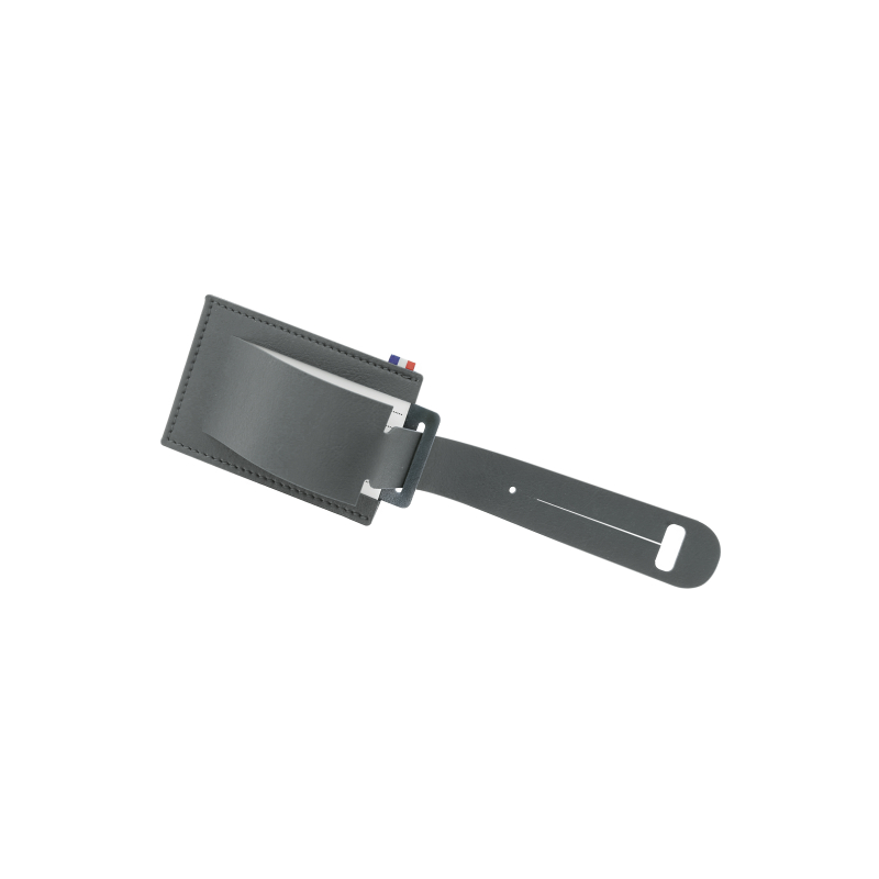 Cette étiquette bagage personnalisable s’intègre facilement aux valises et sacs professionnels.