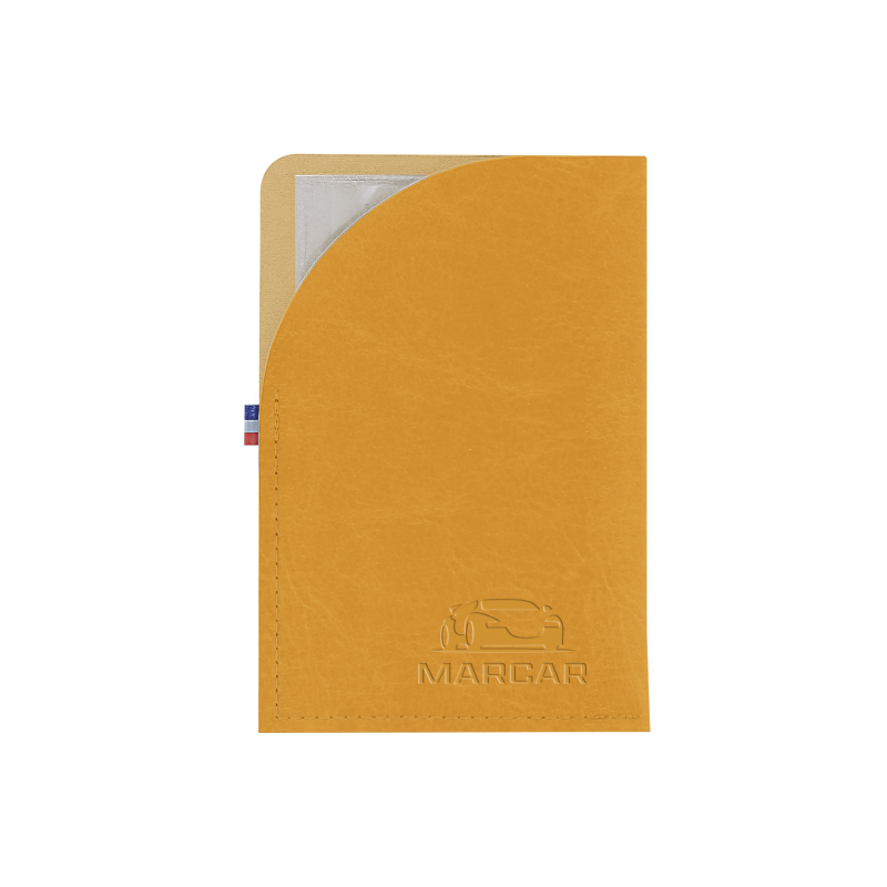 Un porte carte grise fabriqué en France en matière végétale pour une communication responsable.