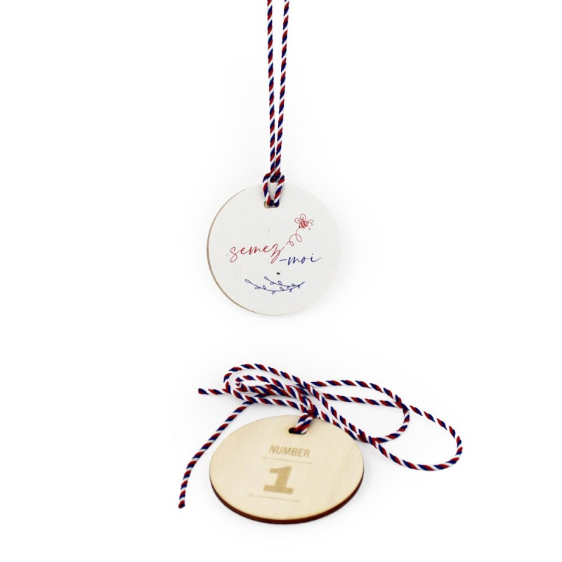 • Options de personnalisation (à partir de 250 ex.) : impression quadri recto/verso sur papier graines (Ø60 mm) ; gravure nominative.