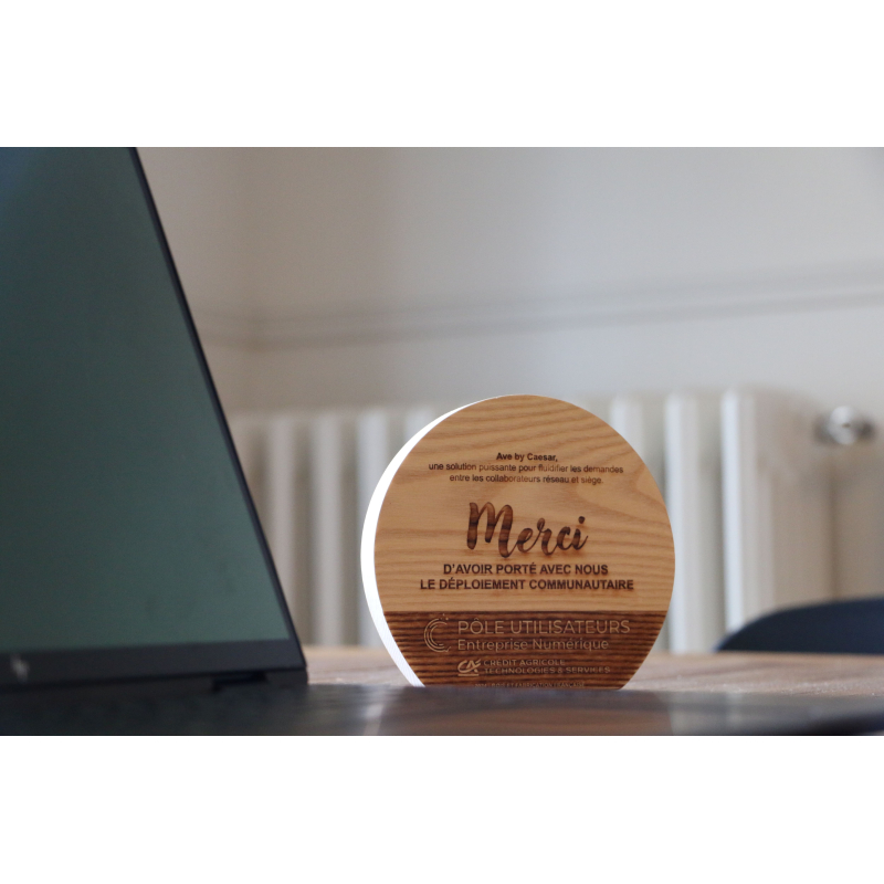 Un trophée en bois pensé pour valoriser vos temps forts et marquer les moments clés de votre communication.