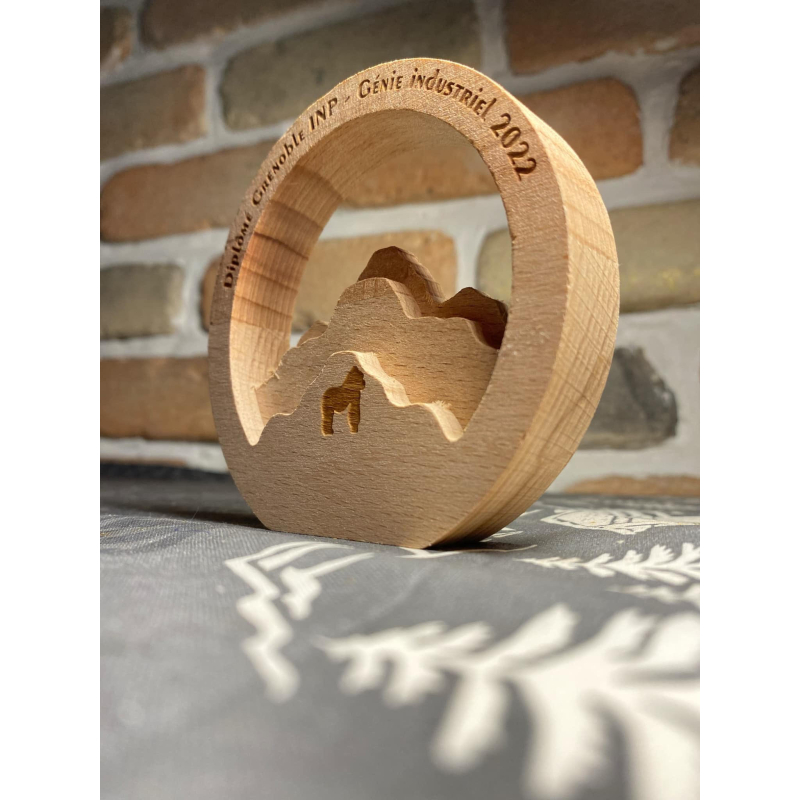 Trophée publicitaire sur mesure en relief en bois fabriqué en France