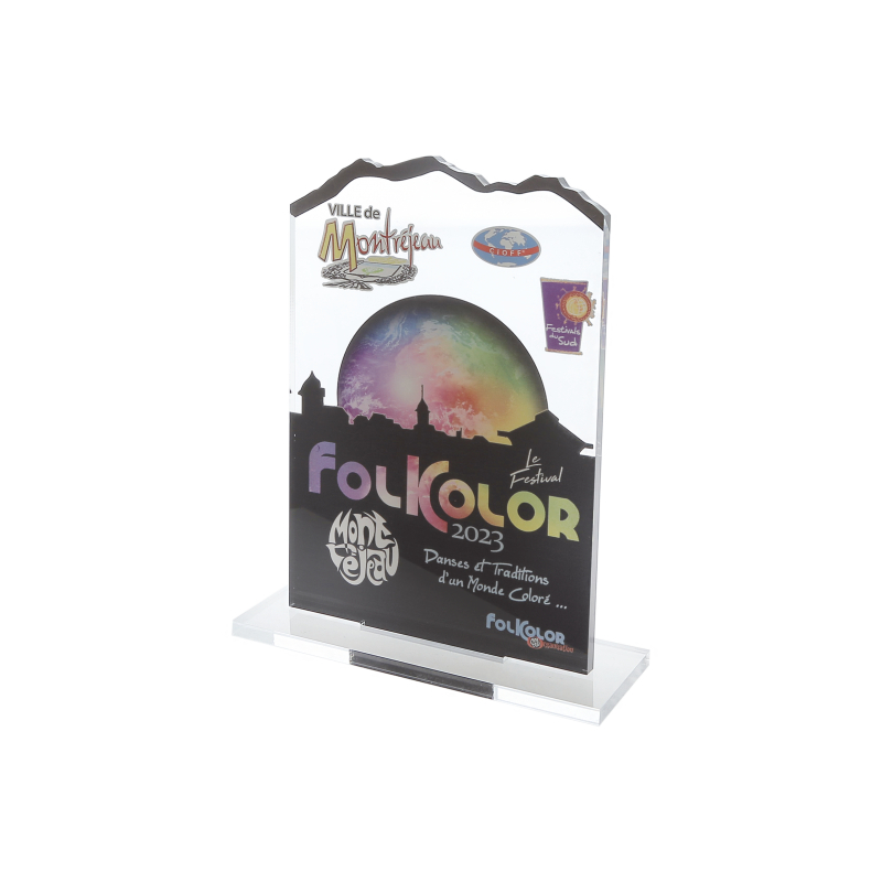 • Structure : trophée avec socle en PMMA transparent.