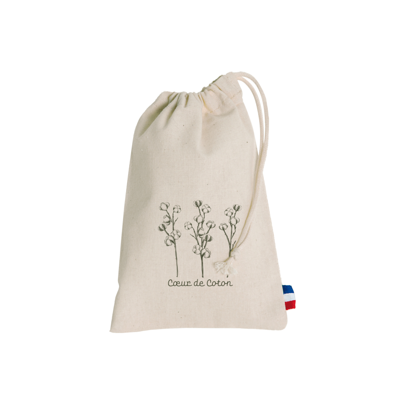 Un pochon en coton fabriqué en France pour une communication compacte et utile.